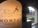 Lo stemma dell’azienda, con l’iniziale di Montauto che si incrocia all’uncino da buttero, ora vuol dire che in Maremma, terra di vini rossi, si fanno vini bianchi che bevono anche i francesi.