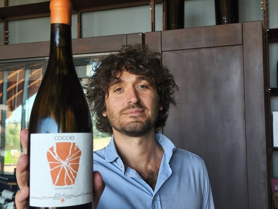 Marche Bianco I.g.t. "Coccio". Mi hanno lasciato 11 mesi macerare in anfora. Sono un vino fermentato e macerato sulle bucce in anfore di terracotta. Possiedo una grande struttura, palato pieno, bilanciato e dalla mineralità tipica del mio territorio. Sono un Verdicchio e nel "Coccio" rappresento un'interpretazione moderna di una tecnica antica, a conferma della mia esponenziale versatilità..