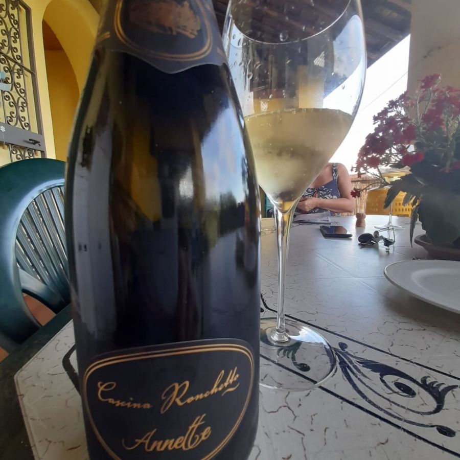 R: Il metodo classico si chiama Annette, nasce nel 2015 da uve Merlot vinificato Bianco, Chardonnay e una piccola parte di Pinot Nero, il riposo sui lieviti per 60 mesi gli dona eleganza e finezza, una spuma persistente mantenendo una buona acidità che fa da supporto alla morbidezza tipica del Merlot, lo Chardonnay promuove i suoi profumi di pesca, albicocca che ben si amalgono con i sentori dati dai lieviti e il Pinot Nero sostiene tutta la struttura rendendo Annette un vino che sorprende dal primo impatto. Il colore è giallo pagliarino carico, intenso, al naso domina la nota fruttata, con sentori leggeri che ricordano la ciliegia e piccoli frutti di bosco, il profumo a ventaglio ci regala il classico profumo di crosta di pane, al palato ha una buona acidita, si avvertono i tannini, le bollicine stuzzicano il cavo orale mantenendo il sapore piacevole, intenso, asciutto e vellutato, 13 Gradi%....