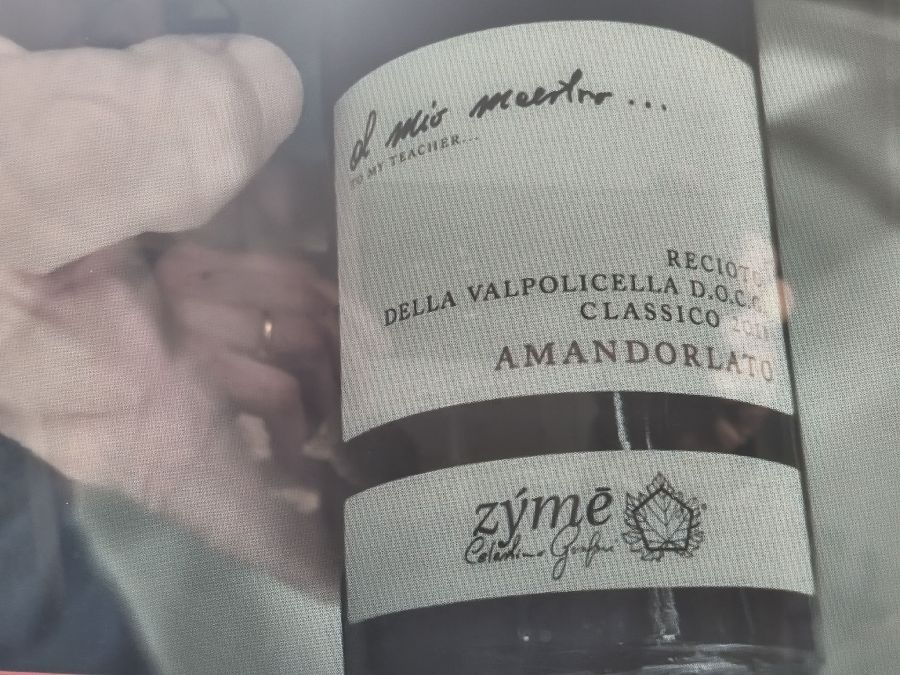 Sentivo la necessità di fargli un'omaggio, di ringraziarlo a modo mio. Il mio pensiero per lui si chiama "Al mio maestro" ed è un vino molto particolare: un Recioto Amandorlato.