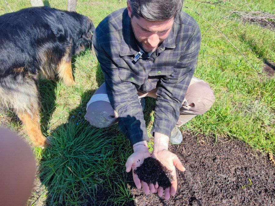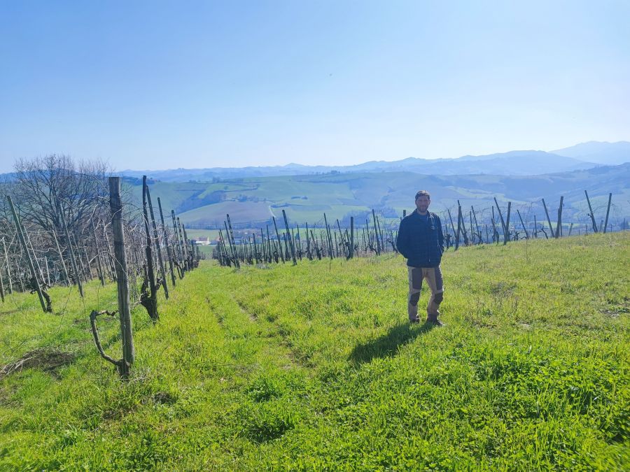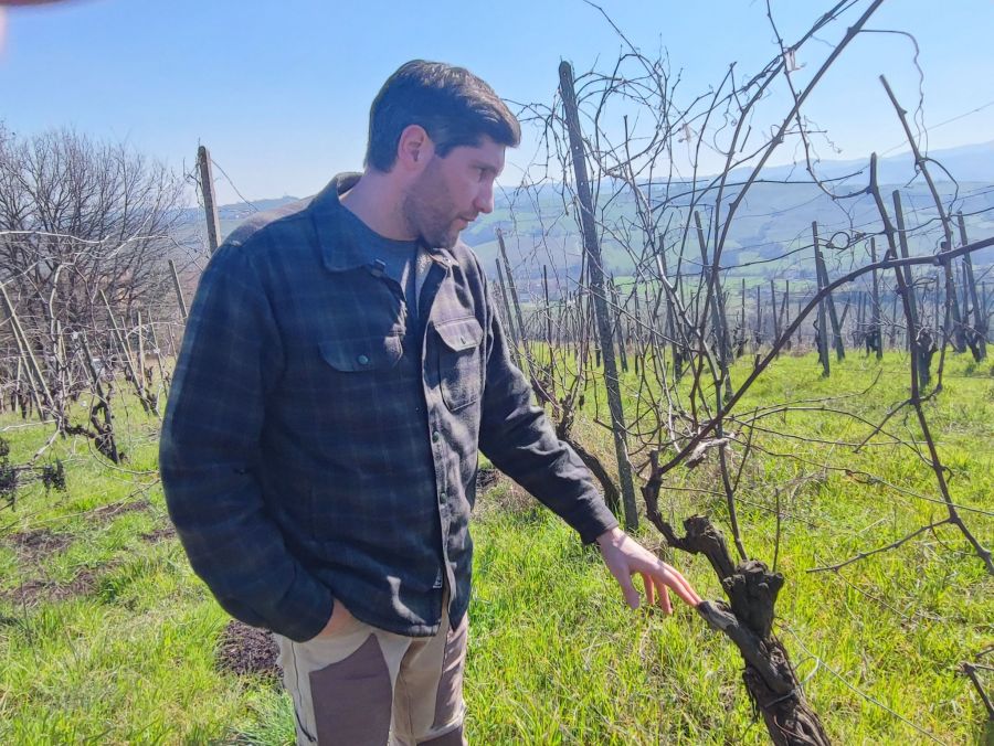 Claudio Campaner spiega in vigna Sud Est lìevoluzione dei suoi vini Fermi