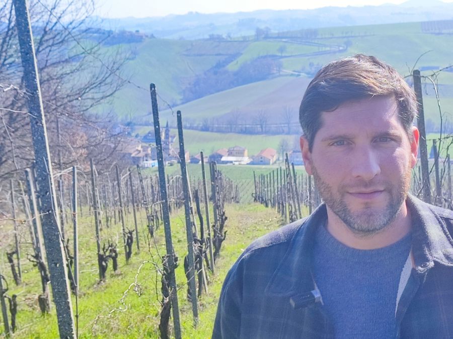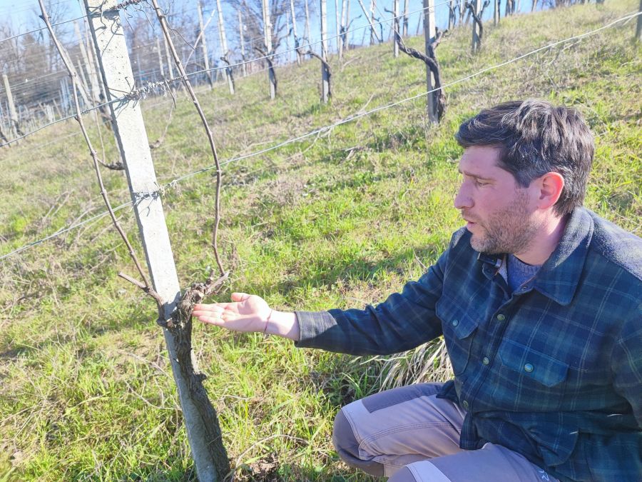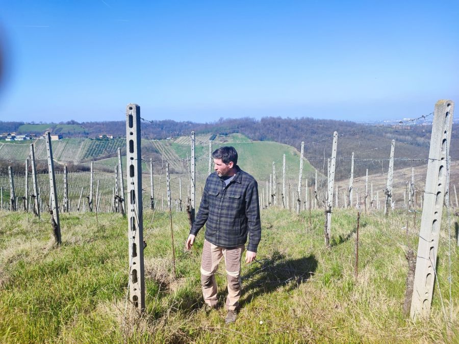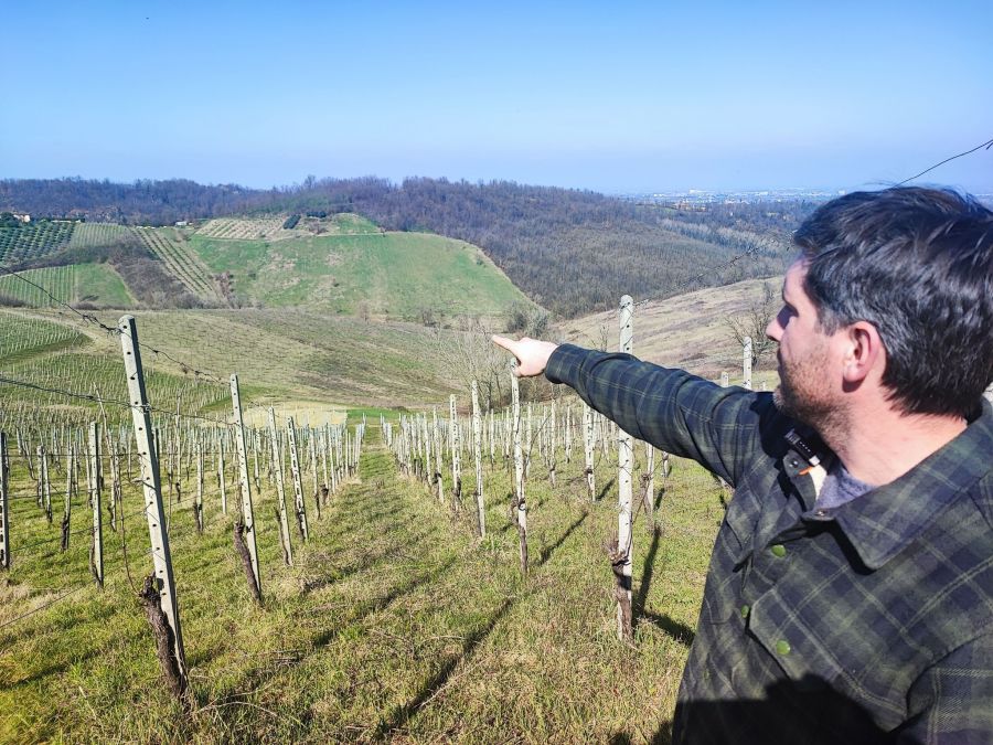 Claudio Campaner spiega in vigna Nord Ovest l'evoluzione dei suoi vini frizzanti
