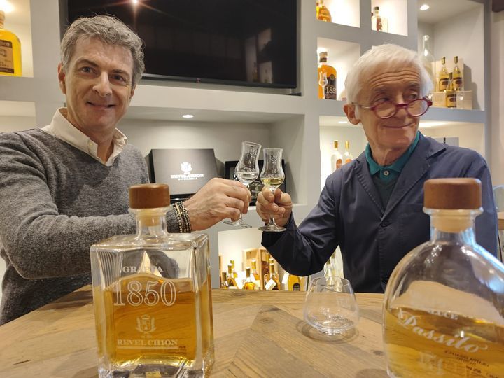 Alla guida della Distilleria Revel Chion dal 2021 Alberto Carrara e Roberto Cossavella, amici d'infanzia e compagni di scuola, accomunati dalla passione per i grandi vini, distillati di qualità e per un'amore sviscerale per il territorio, Chiaverano, in cui sono nati e vivono. Mossi da forte motivazione e sempre coadiuvati dal Maestro distillatore Alessandro Revel Chion e dal personale storico, come Luigia attenta e molto proffesionale e da nuovi collaboratori come Monica, magnetica ed eccellente comunicatrice, un vera perla; tutti puntano a garantire la continuità dell'eccellenza raggiunta nonchè la crescita aziendale con altre produzioni innovative, che avrò il piacere di conoscere attraverso il Maestro distillatore Alessandro Revel Chion, chiamato da me per l'occorrenza, Sandro o Sandrino...