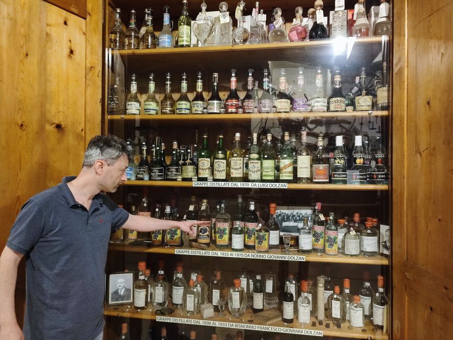 ..con le prime bottiglie di grappa, amari e liquori prodotte dalla Distilleria Villa de Varda che testimoniano vitalità e lungimiranzaa partire dal Trisavolo Michele Dolzan nel 1830 passando dal bisnonno Francesco, arrivando Giovanni Dolzan, al figlio Cav. Luigi e alla VI generazione con Mauro e Michele.