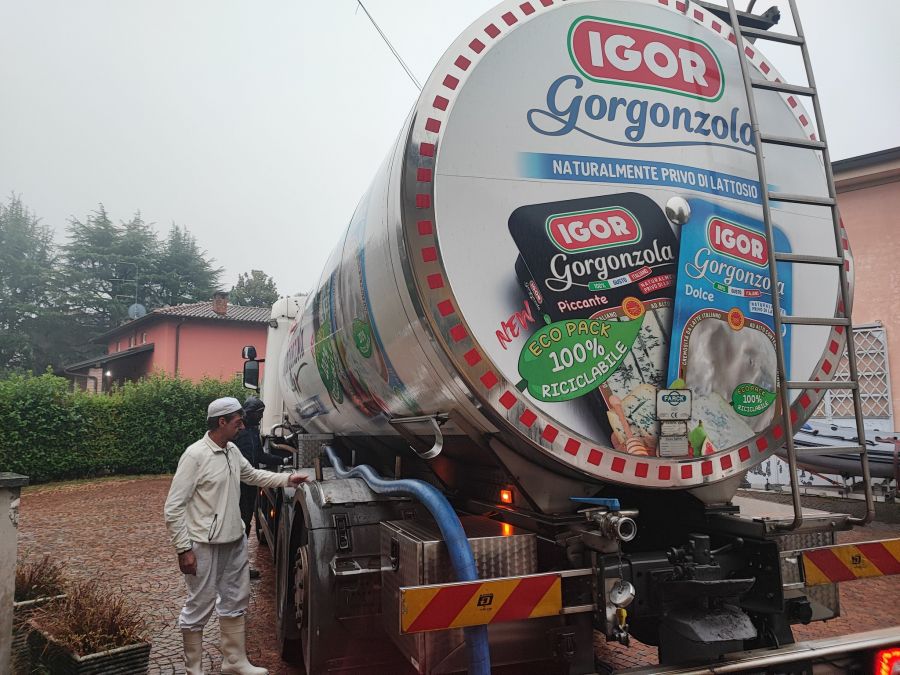 Il latte che utilizzo arriva una volta alla settimana dalla latteria centrale di Cameri, dove fanno lo zola piccante riserva 7 mesi San Lucio, si dice che sia il più buono, mi arriva con l'autotrasporto sponsorizzato da Igor...Giovanni, quando alla quida c'è questo ragazzo, la cosegna è sempre in ritardo e ha sempre una scusa impossibile...parto che sono già in salita. Il latte è di allevatori locali, molto buono, la quantità? Circa 3500 quintali che mi servirà per fare tutta la mia produzione, poi vedrai, adesso ti spego...
