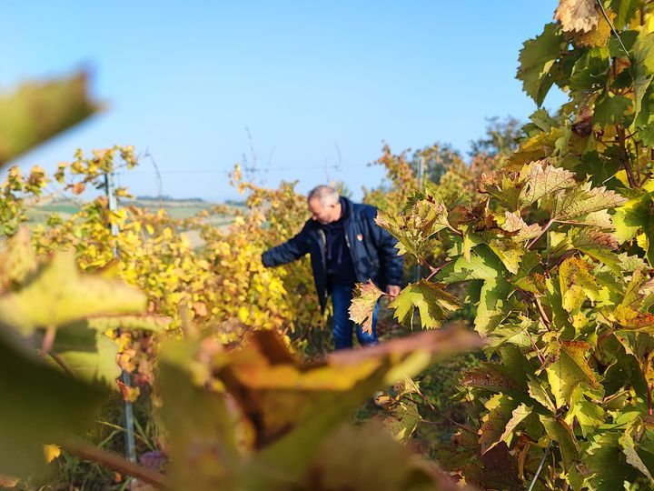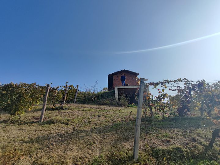 Questo è il vigneto più vecchio, il mio cru, di mio nonno dal 1940, il cru più importante, 2 ettari di vigneto ad esposizione ovest...In questo casotto ci divertivamo, vendemmia, risate, brindisi..è cambiato tuttto....adesso faccio fatica a trovare chi vendemmia, uno che sappia manovrare un trattore, io ho iniziato a guidare il trattore a 8 anni, altri tempi..