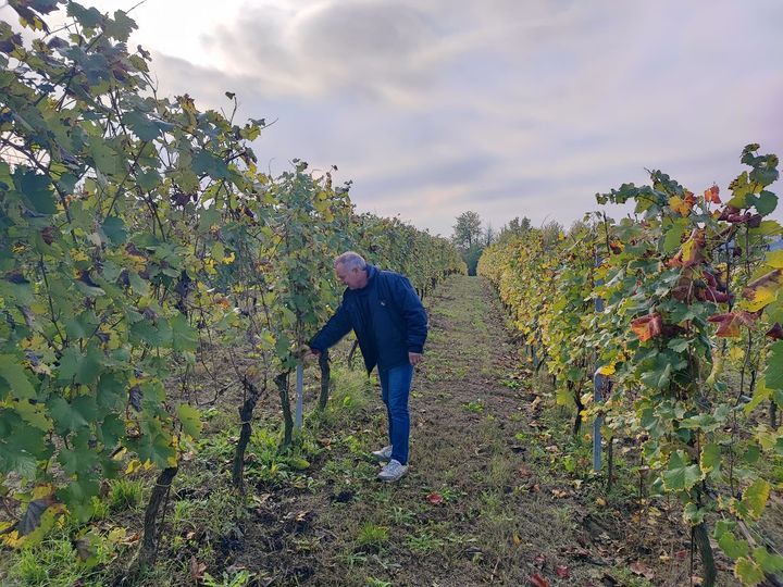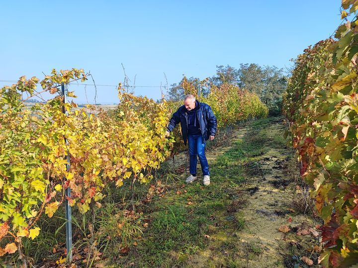 Giovanni ci troviamo propio al confine con il comune di Montemagno. Zona ovest 1ettato e mezzo vigna a Grignolino 7.000 bottiglie ed il resto in box al vino sfuso. Adesso in vigna stiamo facendo un brutto lavoro; a causa di questa malattina estirpiamo la pianta che ha una decina di anni e la sostituiamo con una bartella nuova. Questo virus ha cancellato lo Chardonnay e il Soavignon e più o metto tutti adesso facciamo il Vignogner che è più resistente.