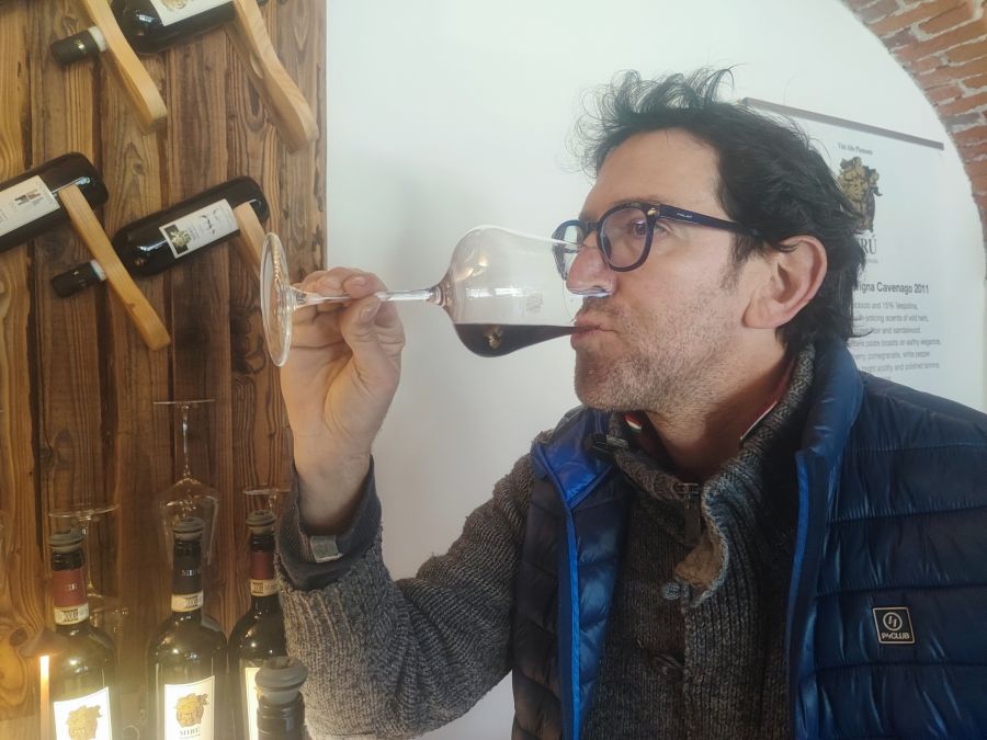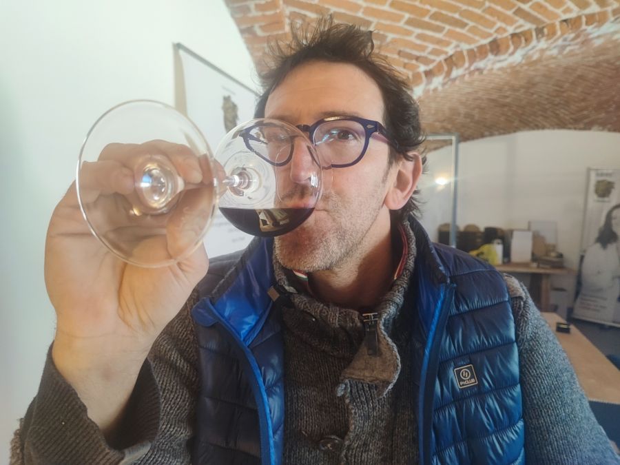 Il vignaiolo Marco Arlunno degusta il Ghemme di Ghemme D.O.C.G. classico