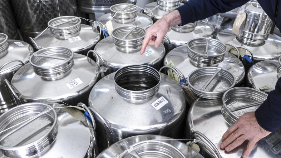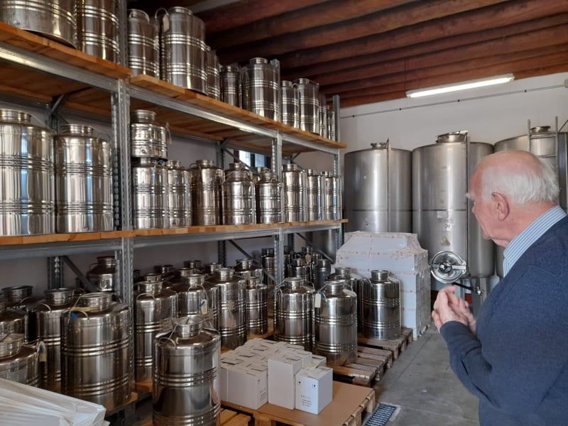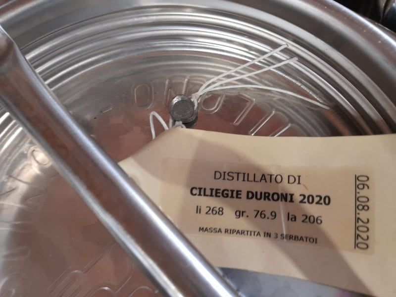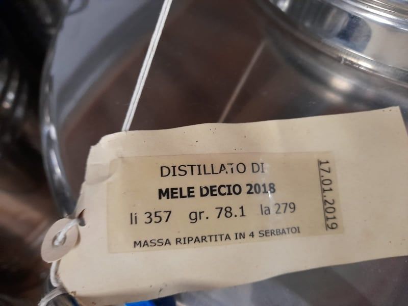 " In queste taniche di acciaio il distillato riposa e si evolve, questo processo dura 3-4-10 anni e donerà spessore, profondità, complessità, armonia al prodotto finale (estirificazione) a cui seguiranno altri processi per diminuire l'alcolicità utilizzando l'acqua di sorgente"....