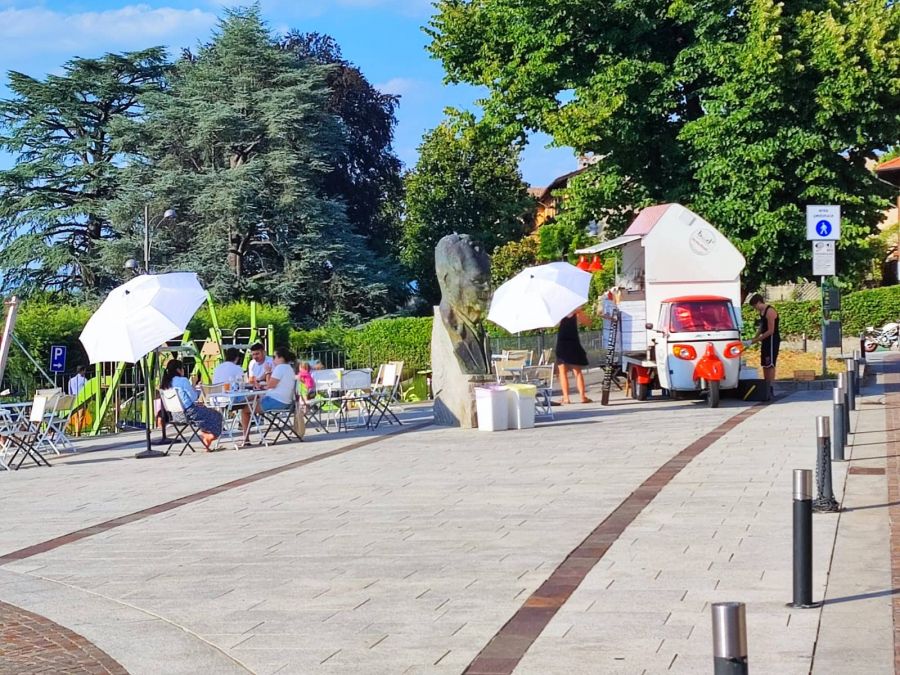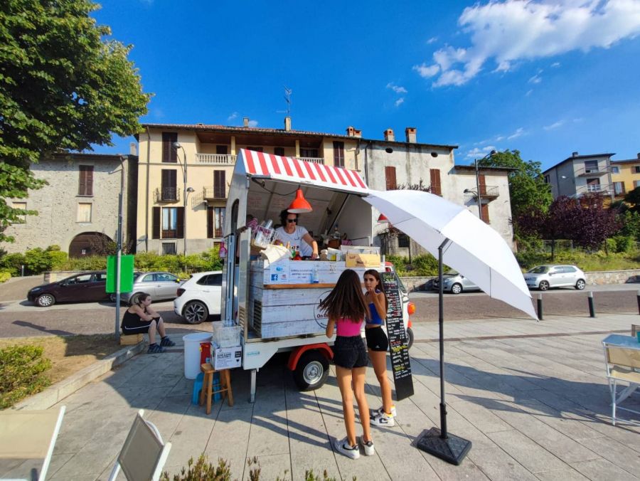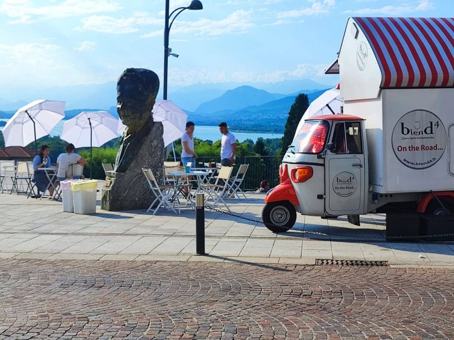 La nostra location di “base” è la Terrazza Belvedere di Azzate, uno dei punti più suggestivi della provincia con una vista mozzafiato sul Lago di Varese e sulle Prealpi Varesine. Potete trovare dei gustosissimi panini con hamburger, hot-dog e arrosticini, piatti, nell’ottica easy & friendly del classico “mangiare di strada”, in abbinamento a vini selezionati dal patron del Blend4 Ivano Antonini, Miglior Sommelier d’Italia 2008, da uve da coltivazione biologica o biodinamica.