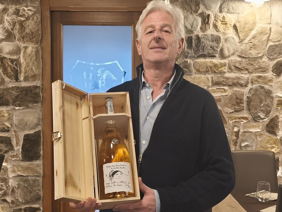 Lucio Scaratti degusta la "Grappa della donna selvatica innamorata del moscato"
