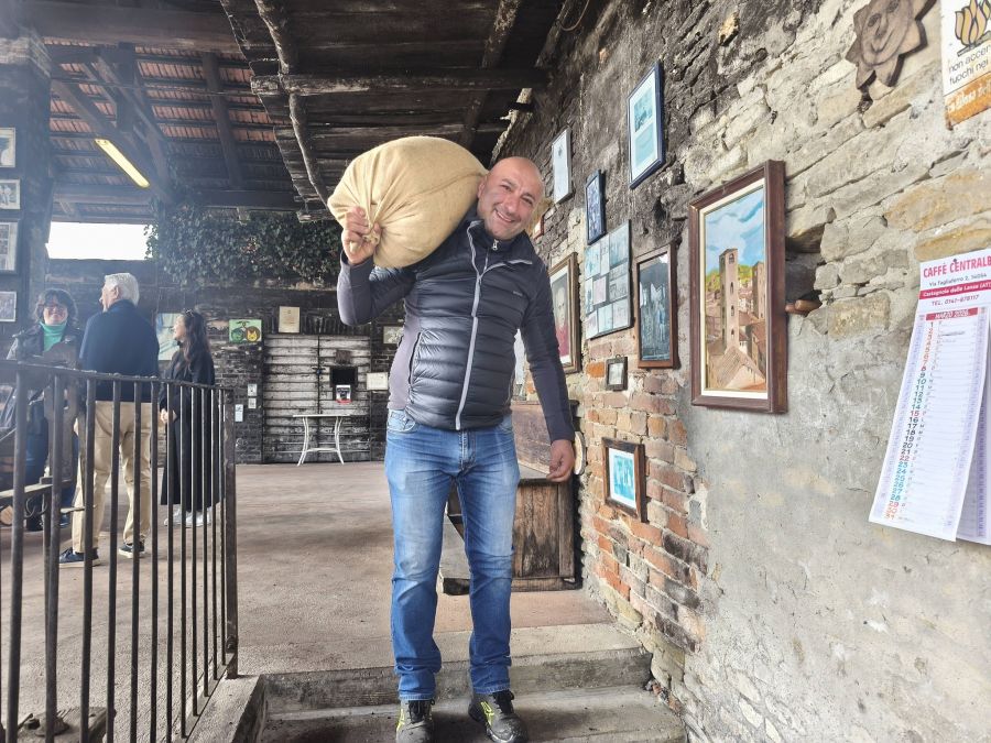 Lucio Scaratti degusta e presenta la "Grappa della donna selvatica che scavalica la Collina del Barolo"