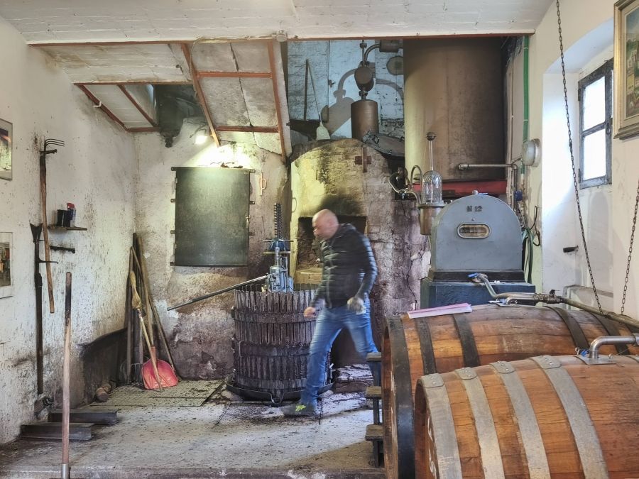 *L'alambicco a "fuoco diretto" ha un fascino, sia per la storia e sia anche per la maestria con cui viene utilizzata. Bisogna avere tante qualità per gestire il "fuoco diretto" e fortunatamente Fabrizio ne ha una in più, la passione...ecco perchè cè chi dice che le grappe attuali siano di standar qualitativo molto alto..e di più.