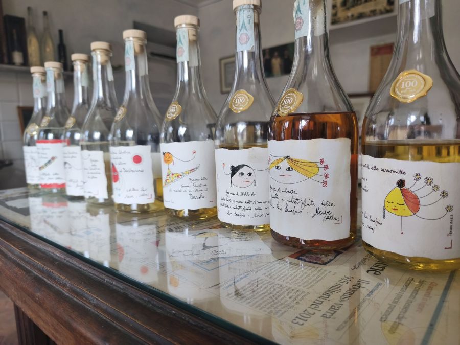 In questo viaggio verso Neive, nella distilleria che più di tutte mi ha aperto le porte e fatto capire cos'è l'arte della distillazione "porto con me e nutro" il massimo rispetto per gli attori, interpreti artigianali della famiglia Levi, di cui esiste un museo che racconta e vende le grappe originali elaborate nella distilleria, ancora in smagliante funzione, con le etichette disegnate e dedicate personalmente da Romano, vere chicche per collezionisti e amanti della grappa da vinaccia del poeta-grapat Romano e grappe alle erbe di matrice di Lidia e Romano...