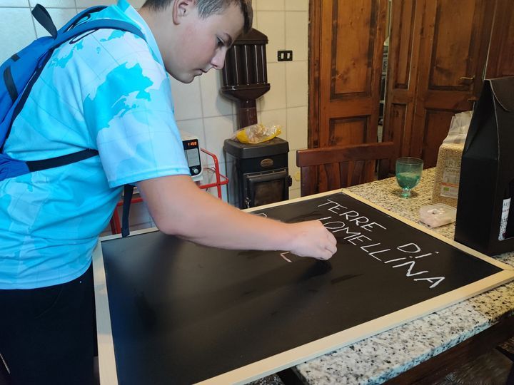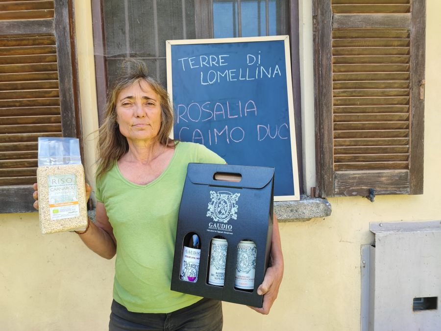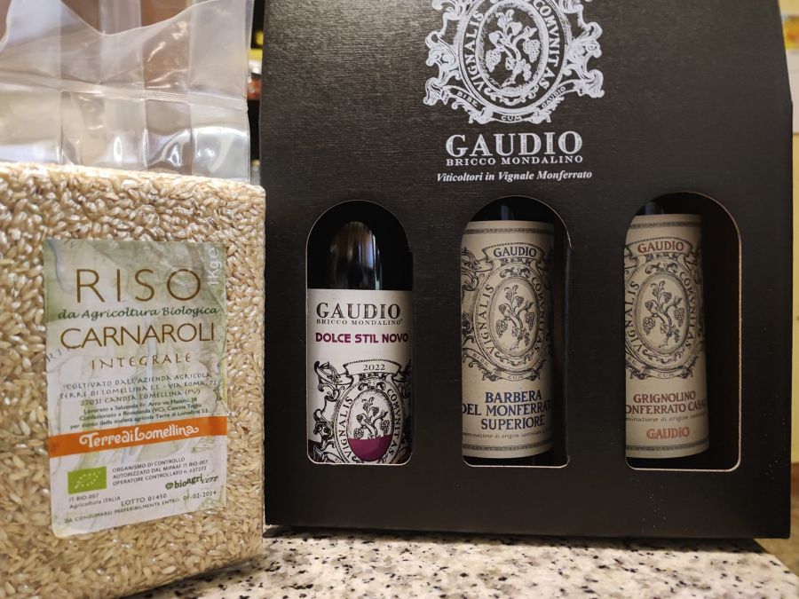 Un momento molto bello del reportage foto video intervista è la "staffetta magica" dove Rosalia Caimo Duc riceve per mano di Giovanni i prodotti, in questo caso vinicoli della precende intervista, di Beatrice Gaudio vignaiola di Vignale Monferrato e Rosalia offre al prossimo visitatore, alcune confezioni del suo Riso Bio Terre di Lomellina