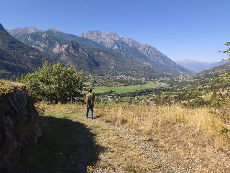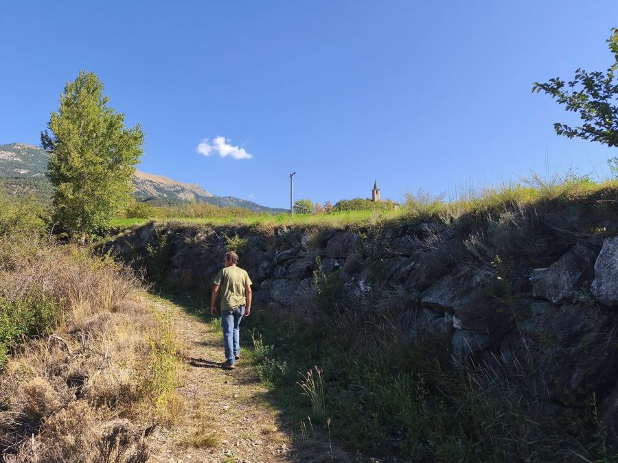Alzando gli occhi, oltre le vigne di Petite Arvine e gli antichi terrazzamenti realizzati con muretti a secco, si intravede un vecchio sentiero che conduce sino al villaggio di Marseiller.