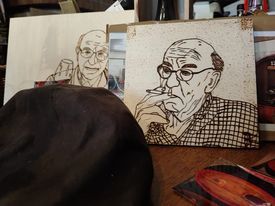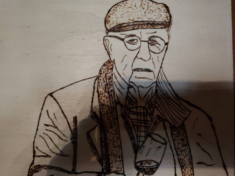 Foto, pensieri, ritratti in bianco e nero, bicchieri consumati dai tanti assaggi, coppola, portacenere di tronco incavato e quell' odore di fumo di sigaretta, c'è tanto amore, tanto rispetto, si avverte, si percepisce...