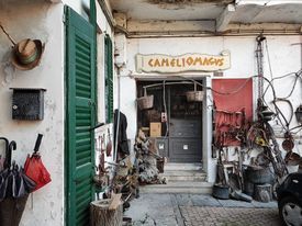 Parcheggio davanti al negozio dedicato alle vendite e alle presentazioni, curioso per le vetrine entro nel cortile scatto qualche foto, suono un campanaccio, si affaccia una signora che alle mie richieste chiama Giuseppe al cellulare e poco dopo ci conosciamo.