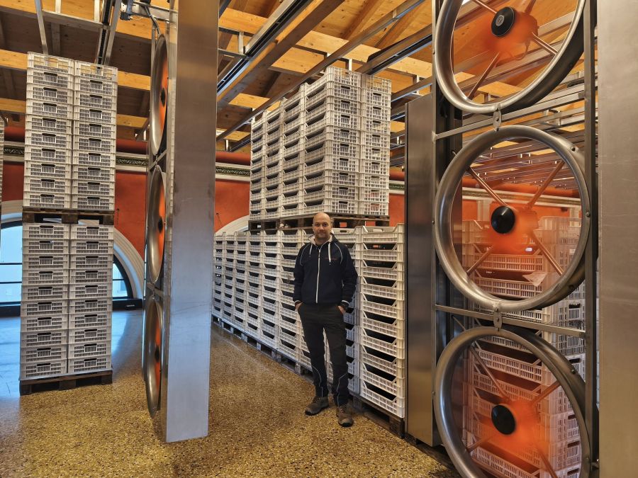 Il luogo in cui si percepisce in modo ancor più spiccato l’inventiva e l’ingegno della famiglia è nella sala dell’appassimento delle uve dove i grappoli riposano in cassettine geometricamente posizionate in maniera perfetta.