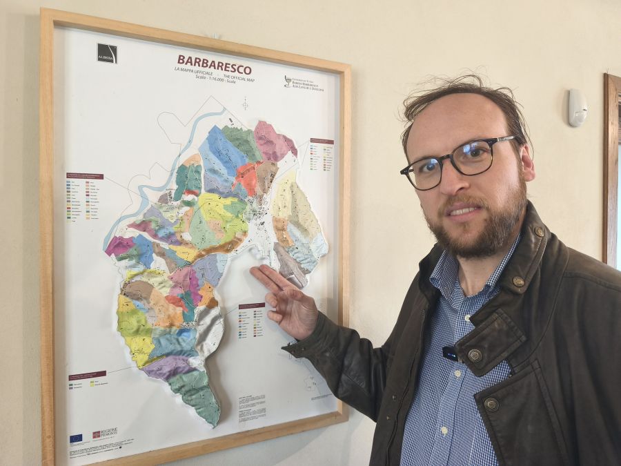 Luca Pasquero Elia indica e spiega zone vinicole per la produzione del Barbaresco D.O.C.G le (MGA)