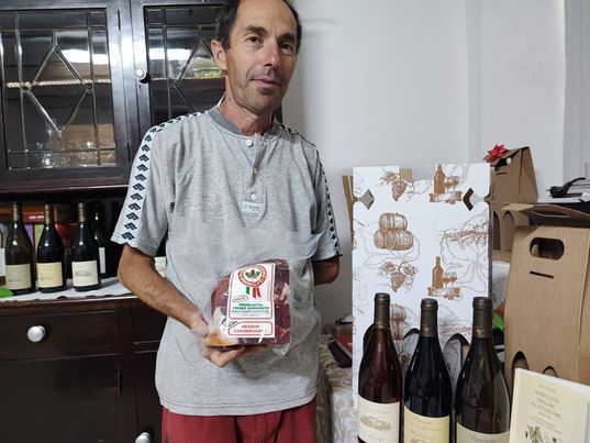 Paolo Poggio riceve dal Prosciuttificio Marco D'Oggiono della Brianza in provincia di Lecco il prosciutto crudo Marco D'oggiono Doce di 18 mesi Riserva e offre in omaggio tre suoi prestigiosi vini...La storia continua.