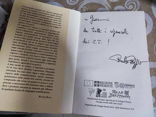 "A Giovanni da tutti i vignaioli delle Colline Tortonesi"!