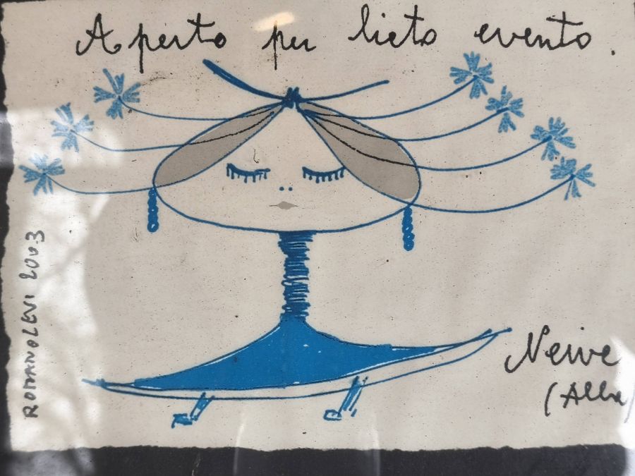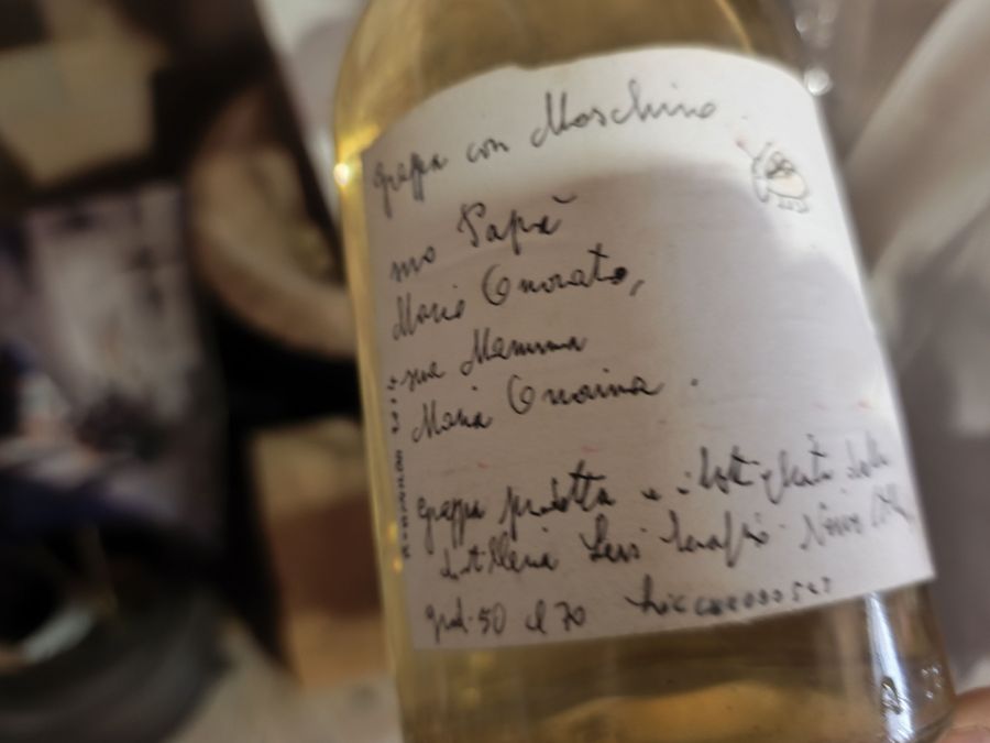 Romano fa niente la prendo lo stesso e scrisse sull'etichetta "Grappa con moschino". Altri di Amburgo andarono per lo stesso motivo,volevano la scritta "Grappa con moschino", anche se non ci fosse stato, e così scrisse "Grappa con moschino invisibile"