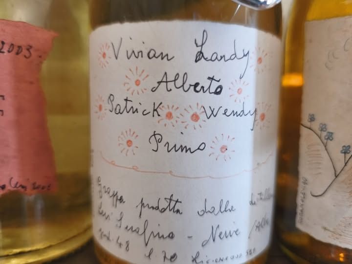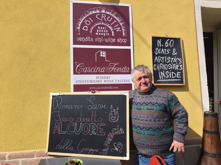 Romano perchè vendi sempre le tue grappe a bassi prezzi? Perchè mio padre Serafino mi diceva sempre: tengo sempre i prezzi bassi così che i ferrovieri di Neive di notte possono riscaldarsi. Va bene Romano ma oggi non c'è ne sono più di ferrovieri..si ne rimangono due, per questo costa sempre 1.500 £...